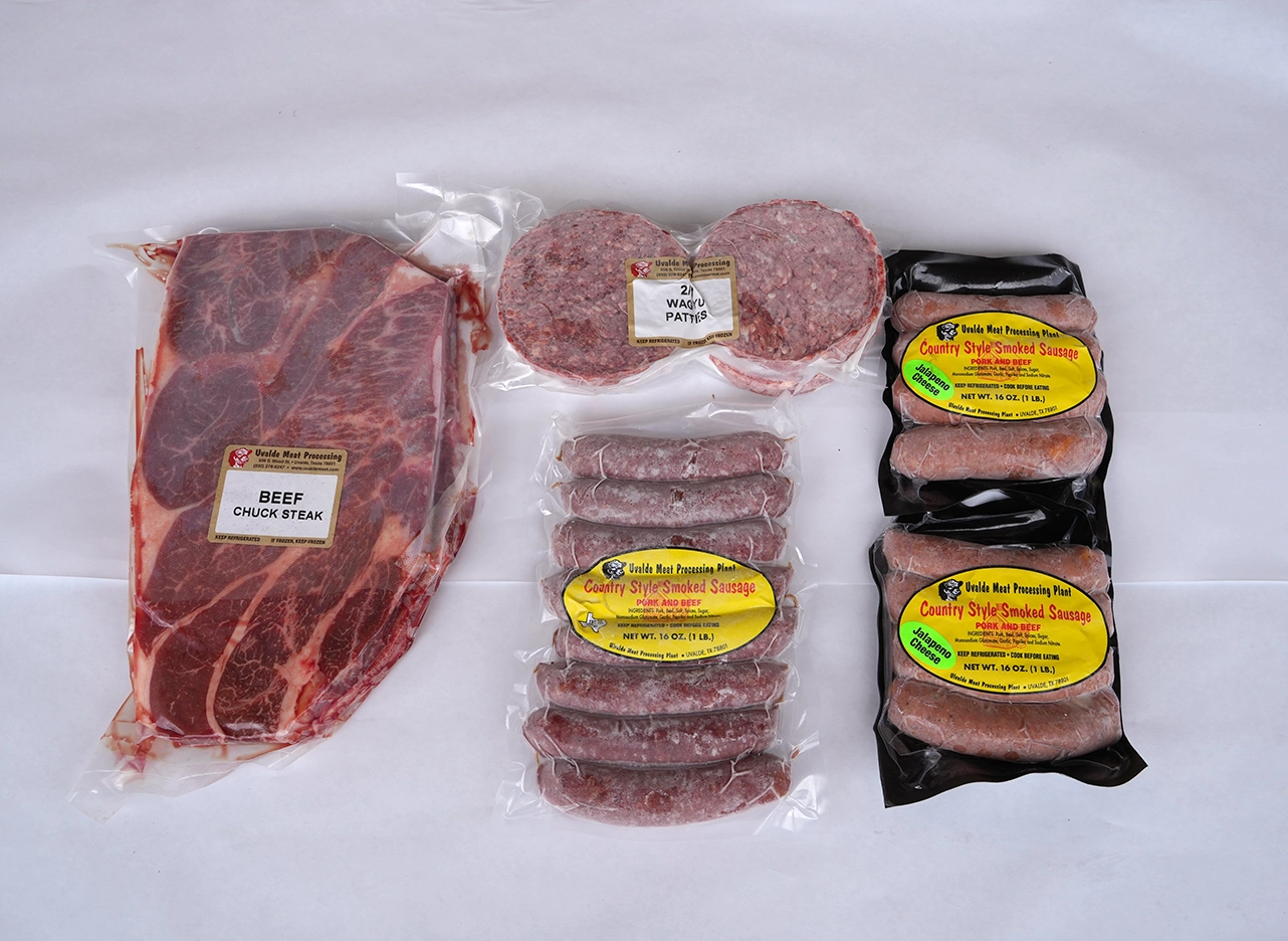 The Parilla Pack is perfect for grilling enthusiasts, offering a versatile mix of meats. It includes 2 lbs of 2/1 hamburger patties for juicy burgers, 2 lbs of flavorful chuck steak, and a variety of smoked sausages. Enjoy 8 regular smoked sausage links and 8 jalapeno cheese smoked sausage links, bringing a kick of spice to your meals. This pack is ideal for barbecues or quick, satisfying dinners.